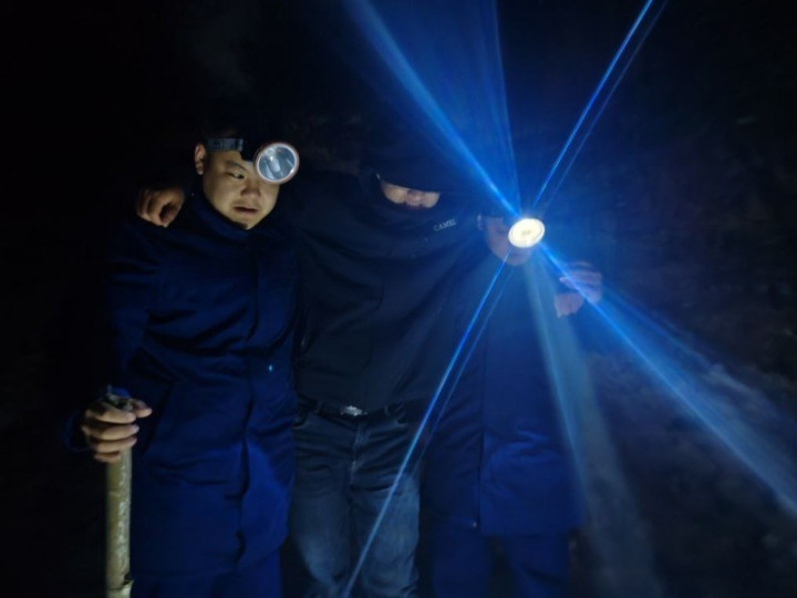 18时42分,徒步搜救队员在结冰路段找到张先生及其同伴。经现场快速评估,鉴于冰面湿滑,使用担架易造成二次伤害。为最大限度确保安全,队员决定采取更稳妥方案:一名队员留守照看并安抚伤者,轻声宽慰缓解其焦虑情绪,同时确认其同伴车辆在山下等候;另一名队员继续上行,寻找最近的接驳车可行路线。约8分钟后,接驳车抵达最近路口。救援人员随即采用三人接力方式,在长约60米的湿滑山林路段上,小心翼翼地将张先生平稳护送至接驳车内。救援人员全程耐心安抚、科学施救,既展现了专业救援能力,更以细致入微的关怀传递着文明救援的温度。